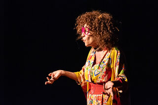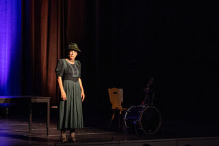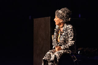 Perlinger lässt sich als betagte Dame über die Missstände in der Gesellschaft aus.