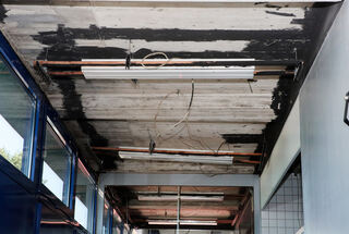 Im Umkleidebereich wurde die Decke aufgrund von Schadstoffen entfernt.