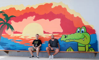 Zufrieden mit der künstlerischen Aufwertung Sprayerkünstler Finn Schuhmann (l.) hat die Graffitis (hier der Sonnenuntergang) auf Initiative von Oliver Schmitz geschaffen.