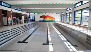 Noch herrscht Leere im Lehrschwimmbecken: Nach der Reinigung werden die rund 5000 Liter Wasser wieder eingelassen für den Unterricht kommende Woche. Die Wandbilder sorgen für Südseeatmosphäre.