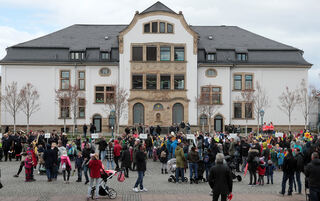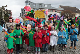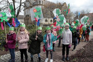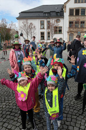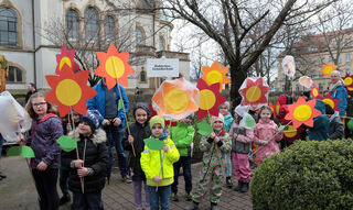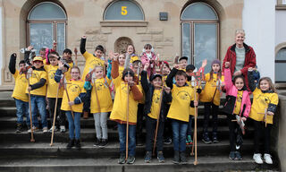 Schüler der Pestalozzi-Grundschule (Klasse 2b), rechts: Evelyne Sommer