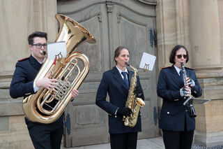 Jakob Roth (v. l.), Johanna Bergmann und Ellen Meynerts vom Orchesterverein Stadtkapelle Hockenheim