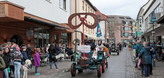 Blick in die Rathausstraße, vorne: Orchesterverein Stadtkapelle Hockenheim