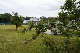 Es gibt auch einen mit Gras gestalteten Aussenbereich mit einigen kleinen Buden.
