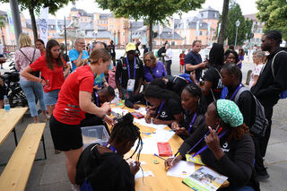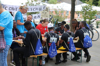 Die Comeniusschule Schwetzingen ist mit von der Partie und interagiert mit den jamaikanischen Sportlern.