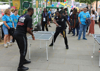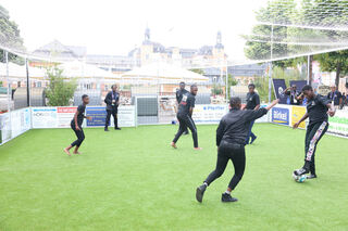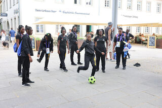 Teinnehmer im Soccercourt am Stand von Rotary Club Schwetzingen Kurpfalz.