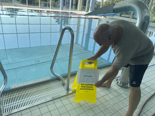 Armin Luksch und sein Team bereiten den Hallenbadbetrieb unter Coronabedingungen vor.