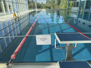 Schwimmer finden im Hallenbad abgeteilte Bahnen vor.