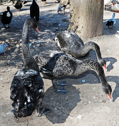 Diese schwarzen Schwäne kommen vom Vogelpark Viernheim.