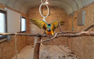 Die Aras überwintern im umfunktionierten Bauwagen.