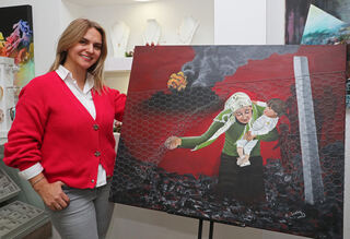 Antalya Juwelier Shop: Sevilay Aydogan neben ihrem Kunstwerk "Flucht vor dem Tod".