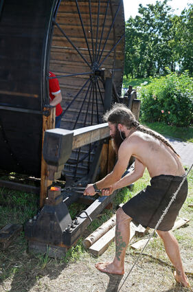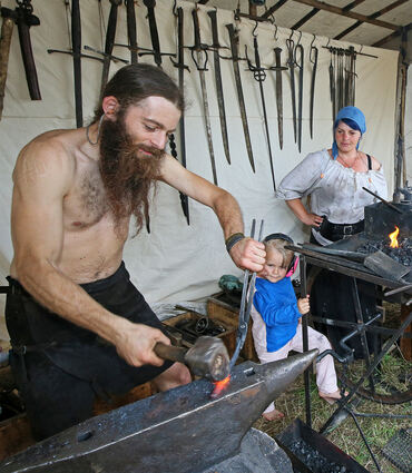 Hammerschmied in Aktion; v.l.: Timo, Leyla und Steffi.