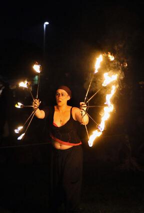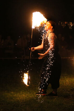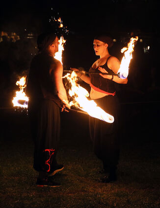 Wann sonst? Die Feuerschlucker treten im dunkeln auf.