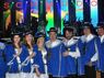 Der erste bis sechste Platz, der beim Kostümwettbewerb prämiert wird, feiert den Sieg zusammen auf der Bühne.