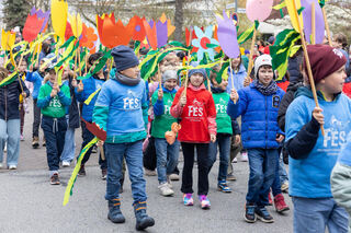 Die Schüler der Friedrich Ebert Schule verwandeln den die Oftersheimer Umzugstrecke in ein buntes Blumenmeer.