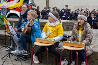Kinder der FES bei ihrer Aufführung kurz vor der Winterverbrennung in Oftersheim.