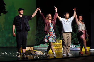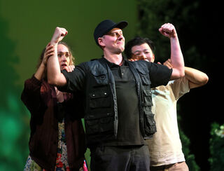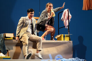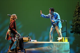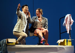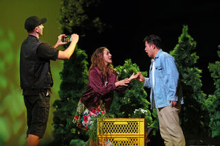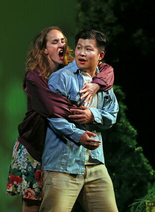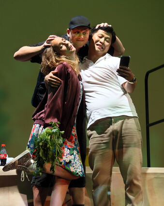Elena Bechter (v. l.) schlüpft in die Rolle von Bastiene, Serhil Moskalschuk spielt Colas und Haesu Kim gibt den Bastien.