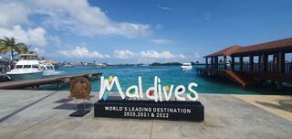 Steigt man aus dem Flughafen in Malé aus und steuert zum gegenüberliegenden Hafen, begrüßen touristische Auszeichnungen die Gäste