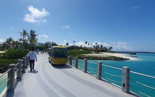 Mit kleinen Elektrofahrzeugen (Buggys) können sich die Gäste über die Insel fahren lassen. Kostenlose Fahrräder gibt es außerdem.