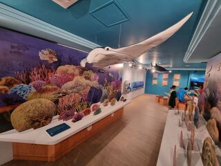 Auf Crossroads gibt es das Maldives Discovery Centre, welches Einblicke in das Land, die Menschen dort, ihre Traditionen und natürlich die Natur gibt. Die Mantarochen, wie ein Modell hier an der Decke hängt, sieht man mit Glück auch live im Ozean.