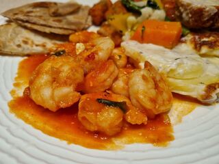 Auf den Malediven kommt der Fisch frisch auf den Tisch. Auch die Shrimps - fein! Mahlzeit!
