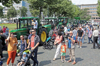 Zahlreiche grüne Traktoren von John Deere fuhren um den Wasserturm.