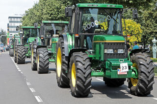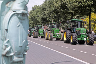In einer langen Reihe stellten sich die landwirtschaftlichen Maschinen auf.