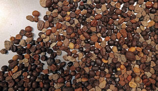 Kleine Steinchen und Fremdkörper werden aus dem gerösteten Kaffe gefiltert. Seit etwa Oktober 2021 haben Rosario Bonafede und sein Team diese Menge gesammelt.
