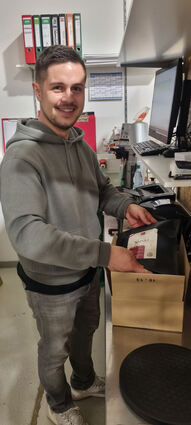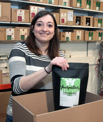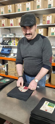 André Kupceric bereitet den bestellten Kaffee für den Versand vor.