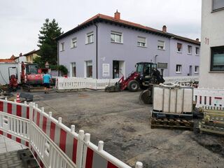 Die Kreuzung zur Herzogstraße und das Teilstück bis zur ehemaligen Bäckerei Flörchinger ist noch bis voraussichtlich Ende September Baustelle, weil hier Leitungen verlegt und die Oberfläche angelegt werden müssen.