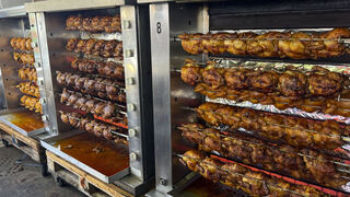 Hier drehen die knusprig saftigen Hähnchen Runde um Runde bis zur perfekten Bräune.