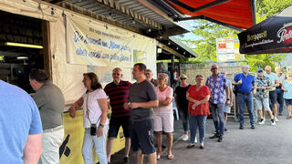 Wenn die Hähnchen so lecker daherkommen, dann nimmt man die Wartezeit gerne in Kauf.