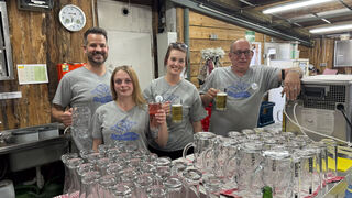 Versorgen am Zapfhahn die Gäste: Sascha, (v. l.), Lucy, Saskia und Christina von den Kleintierzüchtern.