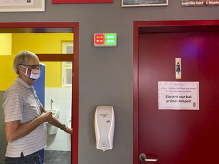 Eine Ampel regelt nun den Toilettenzugang, hier ist ganz kreativ eine Lösung gefunden worden.