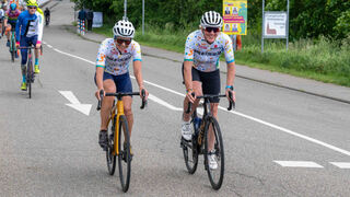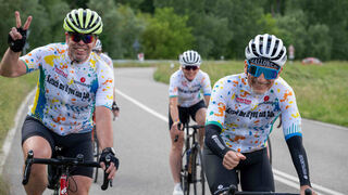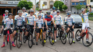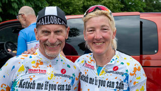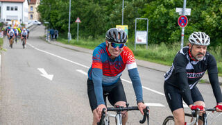So macht Radfahren deutlich sichtbar Spaß: Rechts im Bild der Mitorganisator der "24 Stunden-Rheindamm-Challenge" Reiner Fuchs.