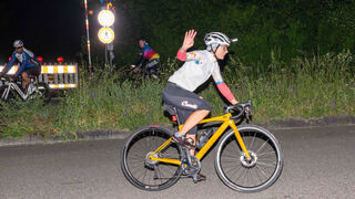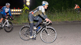 Am Wendepunkt an der B39 nachts gegen 22 Uhr ist immer noch ein Lächeln zu erkennen, obwohl zu diesem Zeitpunkt bereits deutlich mehr als 100 Kilometer gefahren waren.