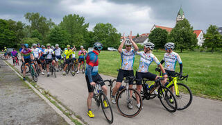 Das Fahrerfeld fährt zusammen als Mannschaft und ohne jegliche Ausreißversuche, da es ja um eine gute Sache geht und nicht um Bestplatzierungen.