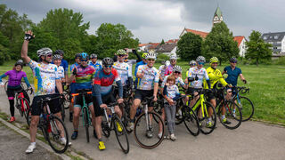Am zweiten Tag sind noch einige Fahrer mehr mit auf die Strecke gegangen. Christine Martus (3.v.l.) ist wie immer auf dieser Tour ganz vorne dabei.