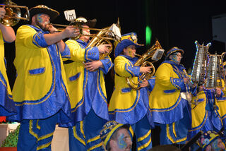 Die Ketscher Hewwlguggler fetzen ordentlich laut Stimmungsmusik raus.