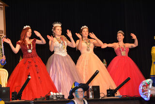 Auch die Proinzessinnen haben Tanzspaß: Ann-Kathrin I. (v. l. , Reilingen), Sanja I. (Ketsch), Sina II. (Oftersheim) und Vivien I. (Astoria Walldorf).