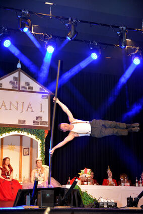 Noah Chorny zeigt Doppeltalent: nach der Equlibristik-Show an der Stange verzaubert er die Gäste.