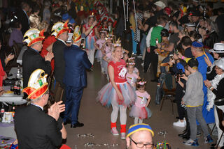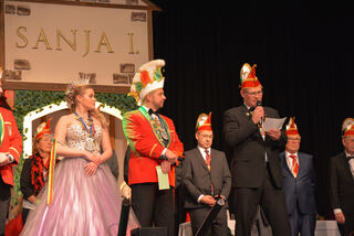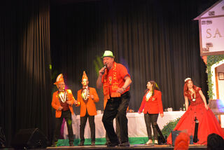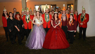 Beim Elferratsempfang: die Narrhalla-Elferräte, Prinzessin Sanja I. aus dem Hause Nesic, Präsident Dirk Berger und Ann-Kathrin I. vom Zauberwald von den Käskuche aus Reilingen, die Gastelferräte bei der Prunksitzung sind.