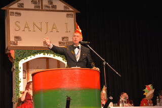 Dirk Berger kündigt Bianca Ehlert als Büttenrednerin an.