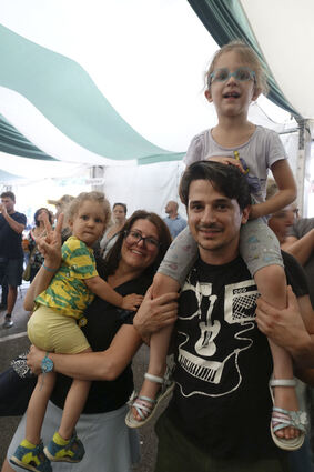 Rebecca (2), Milena Assenov, Yassen Assenov und Emma(5) feiern auch mit, wenn Radspitz in Ketsch ist.