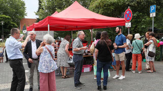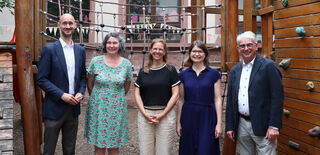 Bürgermeister Matthias Kutsch (v.l.), Heike Quitt, Sina Christen, Victoria Wilcke und Herwig Huber freuen sich über das Jubiläum.