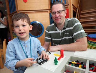 Der Kindergarten in der Scheffelstr. 5 in Eppelheim feiert 125-jähriges Bestehen. David (3 1/2 J.) bastelte mit seinem Vater Martin Löser, der auch schon in diesem Kindergarten war - und dessen Vater auch!).