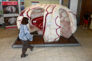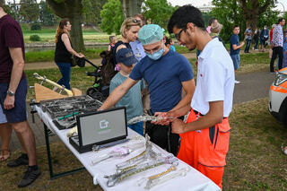 Dozent Andreas Reinert präsentiert Plastinations-Modelle aus dem studentischen Anatomieunterricht.