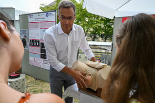 Der Chef der Frauenklinik Marc Sütterlin demonstriert eine Geburt.