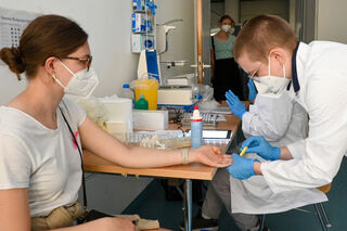 Bei Mascha Isenberg wird die Blutgruppe bestimmt.
