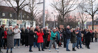 Kundgebung "Keine Räume für rechte Hetze!" auf dem Schlossplatz.